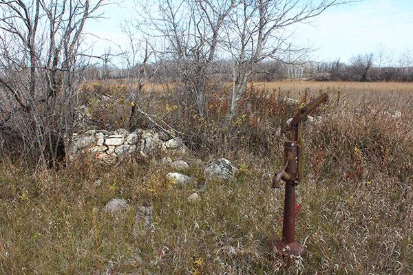 The Helendale School District was established in April 1913 and a one-room schoolhouse was built at NW31-20-5W in Rural Municipality of Coldwell. The school was closed sometime after 1959 and the district was dissolved in 1967. Its catchment area became part of the Lakeshore School Division. The former school building was sold and moved away to be converted into a workshop. Its concrete foundation and water pump were present at the time of a November 2014 site visit.