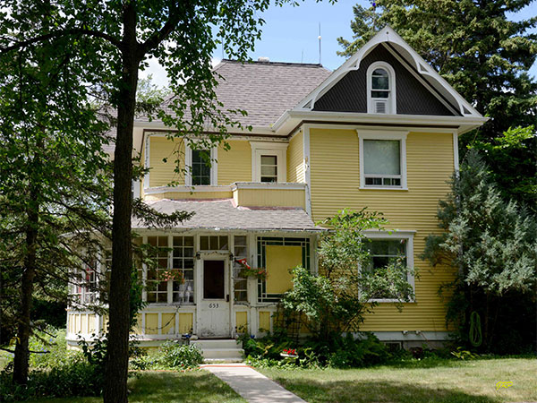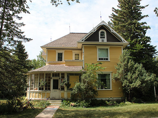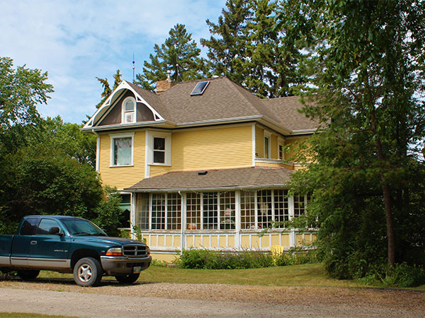 This two-storey house in Boissevain is known for its architecture and John Hettle, a noted implement dealer and farmer and municipal councillor and Liberal MLA. The house is of the Queen Anne style that was popular in the first decade of the 20th century. Around 1910, the Hettle family moved into this house with a varied floor plan (possible because of its construction of wood frame), large and varied window openings, a wrap-around porch delicately detailed in wood, all rendered in golds and whites.