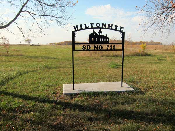 The Hiltonmye School District was established formally in July 1892 and a school building was later erected at Hilton, in what is now the Rural Municipality of Prairie Lakes. The school closed in 1968 and its remaining students went to Glenboro Consolidated School No. 2367. The former school building was used for a time as a cattle shed but was destroyed by fire sometime after 2006. A monument commemorates it at the site.