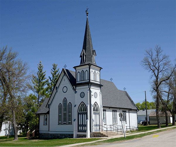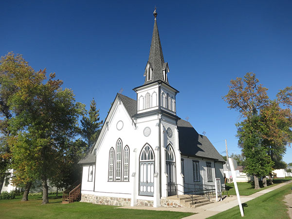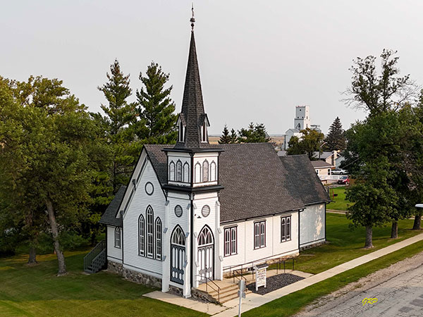 This former Anglican church at Holland, in the Rural Municipality of Victoria, was built between 1893 and 1894 on a design by local architect Andrew Maxwell. It was opened officially at a service attended by Archbishop Robert Machray. The spire was added in 1898. Plaques inside the church commemorate local parishioners who served in the military during the First World War and the Rev. Waddington Clarke, who died suddenly on 24 February 1903.