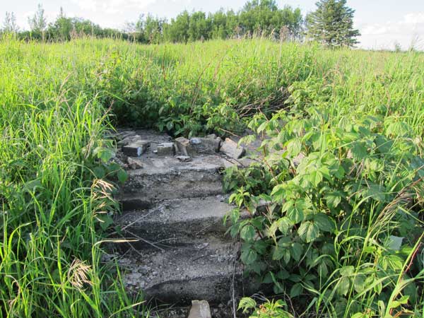 Steps at the overgrown site of the Hollybourne School building (June 2012)