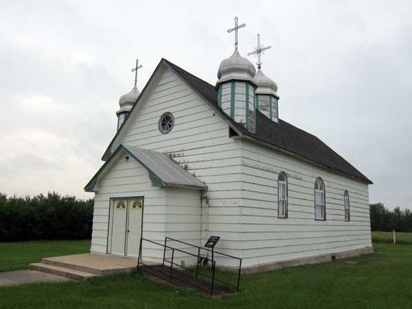 This small Ukrainian Catholic church at Horod in the Municipality of Harrison Park was constructed in 1921 on land donated by Fred Klym. An iconostasis, consisting of six large paintings, separates the sanctuary and the nave. It was obtained from the first Holy Ghost Ukrainian Catholic Church in Sandy Lake and was installed and remodeled in 1938 by Philip Woytowich. Icons on the church walls were painted in 1944 by Edmonton artist Peter Lipinski.