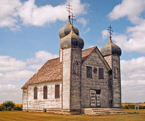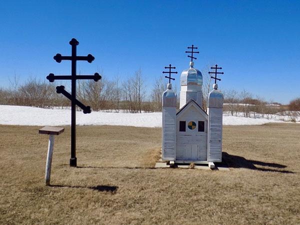 This church and cemetery near Vista in the Municipality of Rossburn was established in 1913. Destroyed by fire in 2008, the church is commemorated at the site by a small replica.