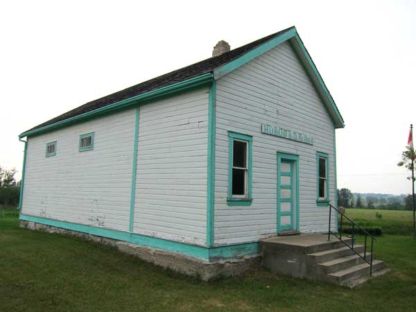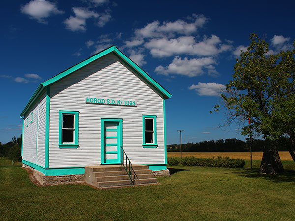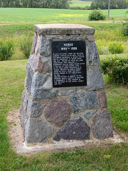 The Horod School District was formally established in April 1906, named for a shortened version of Horodnytsia, the home village in Ukraine of a local settler. In 1909, a one-room wood frame building was constructed by volunteers under the direction of carpenters John and Fred Sichewski. The 22-foot by 40-foot building had a cloak room, science room, and small library. Classes began in August 1909 with 44 students in grades 1 to 9 under the direction of teacher Mr. Smook. Horod School closed in 1960 and henceforth students from the area went to Elphinstone Consolidated School No. 196.
