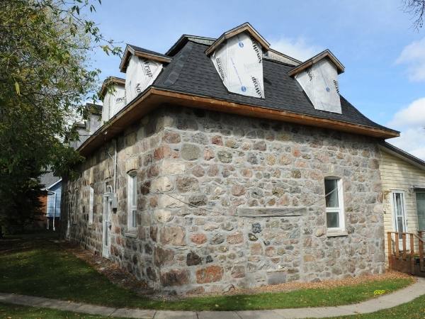 This stone duplex on Lake Avenue in Killarney was built by stonemason Samuel Hossack (1829-1913) and his wife Margaret Hossack (1832-1905), who arrived in town in 1881. The building boasts a mansard roof and dormers.