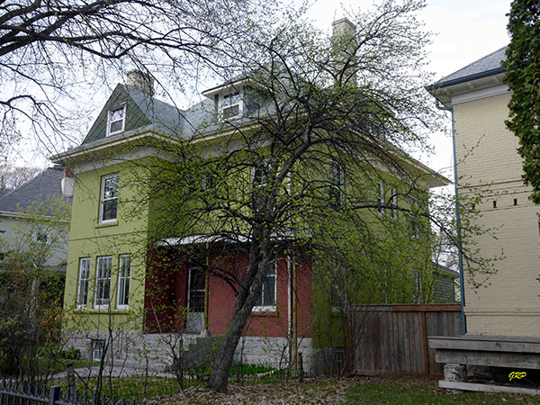 This two-storey wood frame residence on Balmoral Street in Winnipeg was designed by architect Herbert Henry New and built in 1905 for lawyer William Frederick Hull.