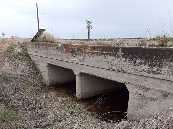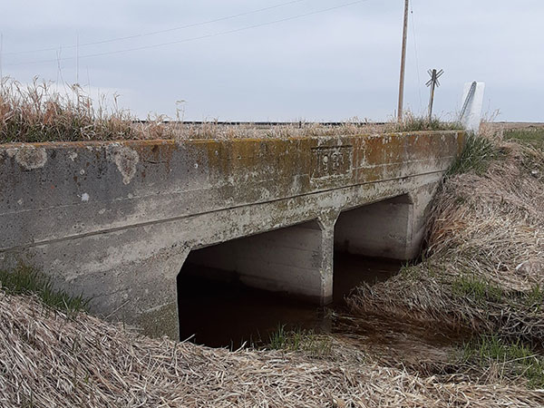Concrete culvert bridge No. 1257 on the former Provincial Trunk Highway 3 (May 2020)
