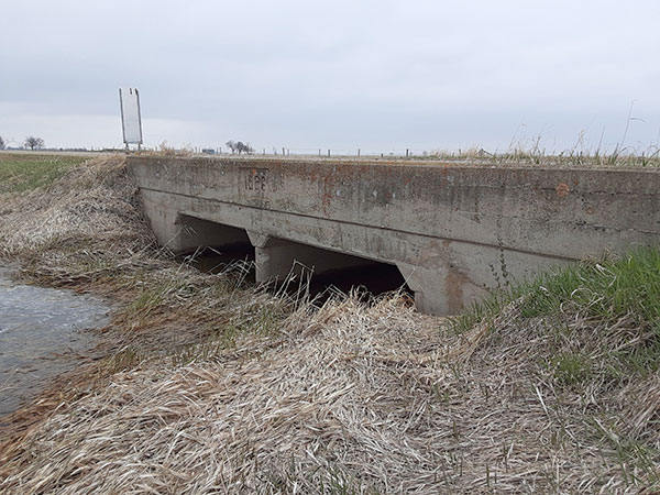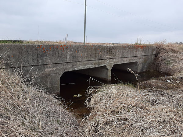 Concrete culvert bridge No. 1258 on the former Provincial Trunk Highway 3 (May 2020)