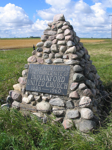 A monument in the Municipality of Norfolk Treherne commemorates Indianford Presbyterian Church and Indianford United Church, which operated here from 1885 to 1960.