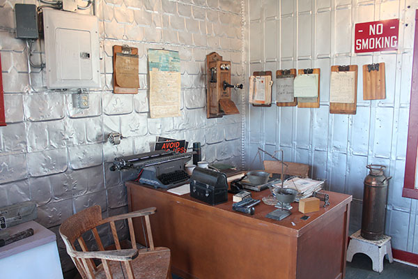 The agent’s office, joined to the elevator by a catwalk, is different from the traditional design because it has two rooms. Prior to electric power being brought to Inglis in 1949, diesel engines were used to provide power to operate the elevator. They were housed in these offices, away from the elevators for fire safety. The upper floor was where the agent worked while the lower portion housed the Rouston-Hornsby diesel engine that powered the belt-driven leg.