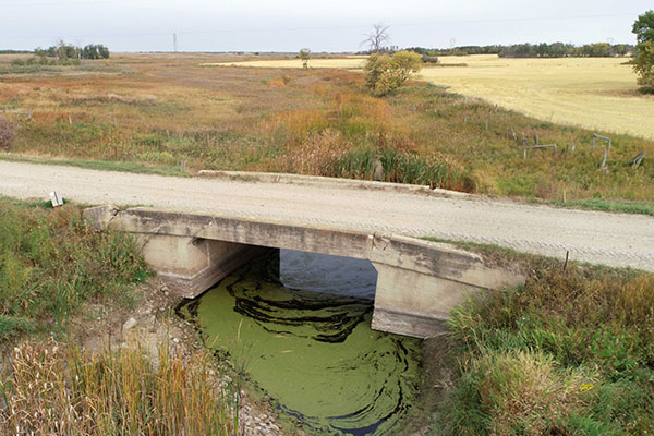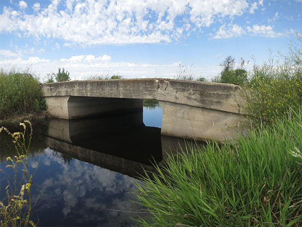 This concrete beam bridge over Jackson Creek in the Municipality of Two Borders was built in 1923 by the Winnipeg-based form of Lacour and Schioler, using Plan 1003, for $2,150. It was removed sometime between 2020 and 2025 and replaced by steel culverts.
