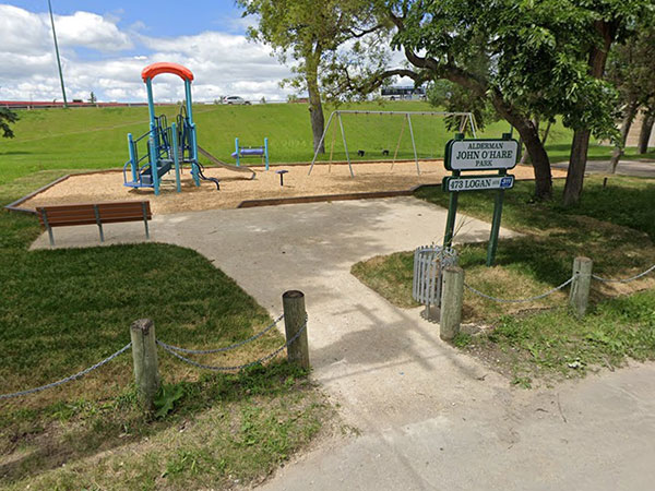 This park along Logan Avenue in Winnipeg, named for municipal official John Peter O’Hare, was unveiled on 26 July 2018 by Councillor Mike Pagtakhan.