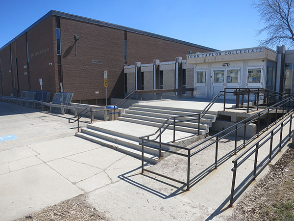 In October 1963, local voters approved a proposal to construct a new high school, named in commemoration of local settler John Taylor, in this area of Winnipeg to alleviate overcrowding at Westwood Collegiate. The proposal had a budget of $984,000 and called for a structure containing 24 classrooms, four science laboratories, three commercial rooms, three home economics rooms, three industrial arts rooms, a library and guidance rooms, two music and audio-visual rooms, an art room, and an auditorium. The architectural firm of Herman and St. Lawrence was hired and the Winnipeg Construction Company commenced construction in March 1964.