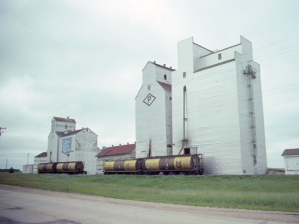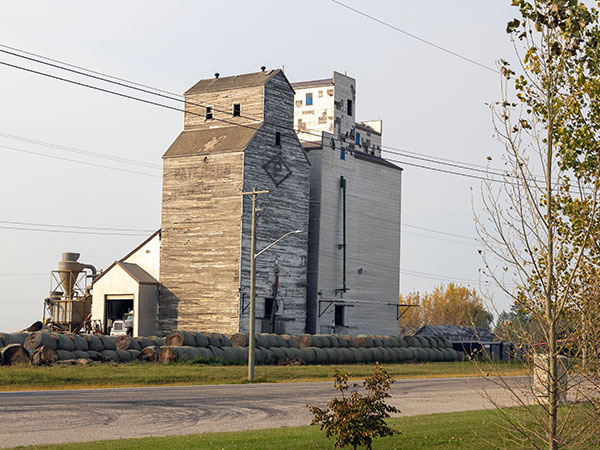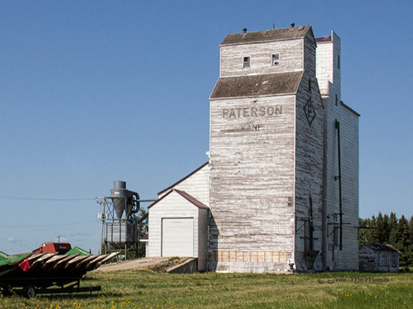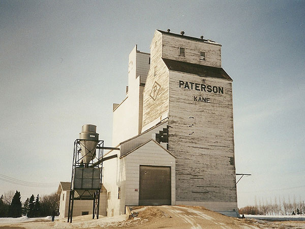 A wooden grain elevator at Kane, on the CNR Miami Subdivision in the Rural Municipality of Morris, was built by the Paterson Grain Company in late 1947, replacing an older elevator destroyed by fire in August 1947. Two annexes built in the 1950s were replaced in 1982 by a new elevator and annex, immediately beside the older elevator. The adjacent railway line was removed in 2007 but the elevator was owned by the company and leased to local farmers for private grain storage.