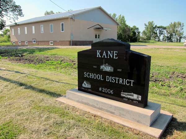 The Kane Consolidated School District was established in August 1919, consolidating the Queen Centre School No. 1219 with portions of the districts of Bloomfeld School No. 793, Kronsweide School No. 1030, Neufeld School No. 1580, and Woodvale School No. 1350.
