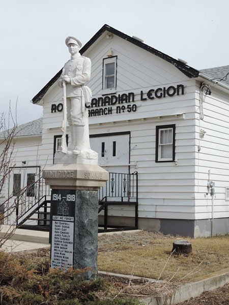 A monument in front of the Royal Canadian Legion in Kelwood, in the Rural Municipality of Rosedale, was erected in commemoration of soldiers from the area killed during military service. It was unveiled at a ceremony on 26 June 1931.