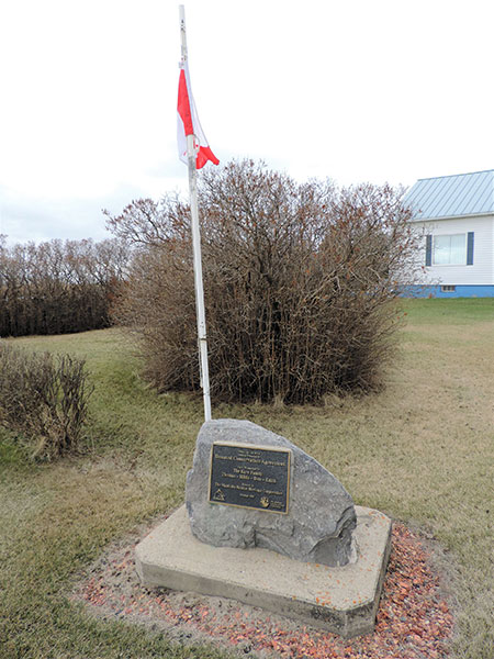 A monument in the Rural Municipality of Oakview, dedicated in October 2001, commemorates a conservation agreement on land here, by members of the Kerr family, to the Manitoba Habitat Heritage Corporation.