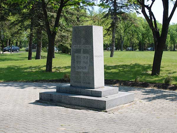 A war memorial, located along Main Street in Kildonan Park, commemorates the ultimate sacrifices made by local citizens those who served Canada in the First World War, Second World War, Korean War, and peacekeeping operations abroad. It was dedicated on 16 June 1968.