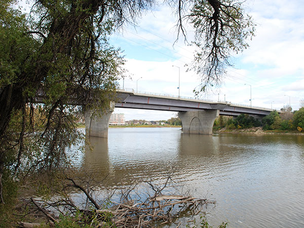 Before the construction of this bridge, a ferry enabled local residents to cross the river during the late 1800s and early 1900s. (The ferry was commemorated by the original naming of nearby Ferry Lane, now Whellams Lane.) During the planning of the inner beltway for the City of Winnipeg, consideration was given to using the Canadian Pacific Railway Bergen Cutoff Bridge, but these plans were ultimately abandoned in favour of this more suitable location.