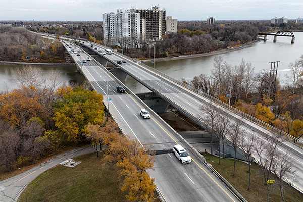 Aerial view of Kildonan Settlers Bridge (October 2024)