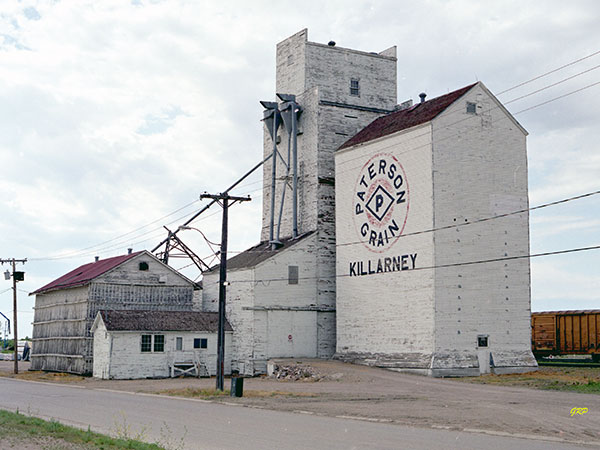 A wooden grain elevator at Killarney, on the CPR Napinka Subdivision in the Rural Municipality of Killarney-Turtle Mountain, was built by Paterson Grain in 1927, using materials salvaged from two previous elevators. It was replaced by a larger elevator east of Killarney opened in 1980.