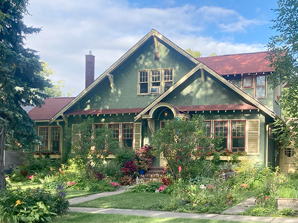 This 1½-storey brick and stucco house on Garfield Street South, in the Wolseley neighbourhood of Winnipeg, measuring 34 feet by 40 feet, was designed by local architect Max Zev Blankstein and built in 1927 by Western Home Builders Limited for furrier Morris Kim at a cost of about $10,000.