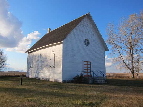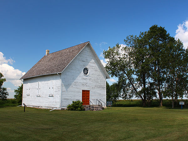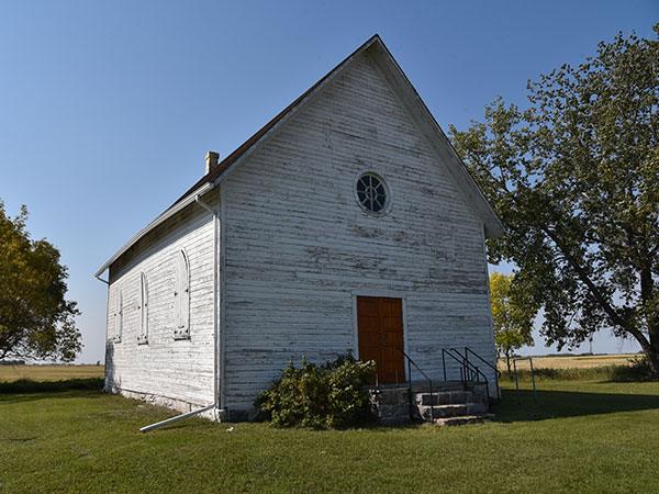This Presbyterian church was erected in 1906 on the southeast quarter of 3-5-17 west of the Principal Meridian in the Rural Municipality of Prairie Lakes. The 30 Gaelic-speaking families who built it came from the Isles of Lewis and Harris in 1888, sailing aboard the ships Corean and Buenos Ayrean to Montreal and coming by the Canadian Pacific Railway to Killarney. They homesteaded in the Bellafield and Hilton districts. A commemorative plaque beside this municipally designated heritage site (1991) was dedicated on 17 July 1988.