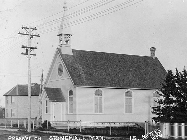 Prior to the building of the present-day Knox Presbyterian Church at 308 Second Avenue in Stonewall in 1883, local Presbyterians met in the old Victoria Hall on the site of today’s McConkey’s store. The building contract was awarded to A. T. Green of Winnipeg. The congregation is still active in the church.