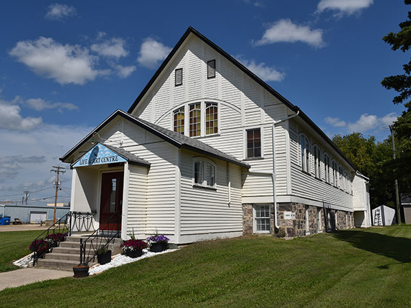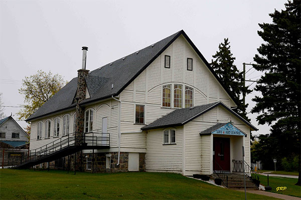 The cornerstone of this former United Church in Roblin, in the Municipality of Roblin, was laid in August 1908 and it opened in July 1909. Closed when a new church was built nearby, it was converted to the Roblin Life & Art Centre in 2005.