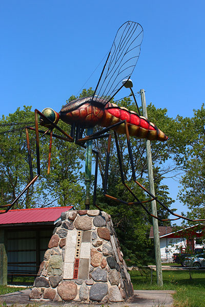 A stone and metal monument of a large mosquito at Komarno, in the Rural Municipality of Rockwood, was designed and built between 1984 and 1986 by artist Marlene Magnusson Hourd to commemorate the name of the community, a Ukrainian word that means “lots of mosquitos.” The sculpture was unveiled in October 1986.