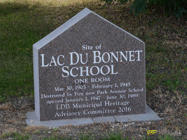 A stone monument at the site of the first Lac du Bonnet School was erected in 2016 by the Lac du Bonnet Municipal Heritage Advisory Committee. Some records relating to school operations through the years are held by the Lac du Bonnet Historical Society.