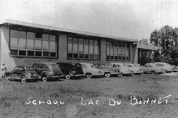 The Lac du Bonnet School District was established formally in May 1903 and, the following year, a one-room log schoolhouse built at NE7-15-11E in Lac du Bonnet. A June 1915 addition made it into a three-classroom school. As student enrollment grew, two teachers were employed by the district by 1913 and three teachers by 1921. A larger school building, designed by Gilbert Parfitt, was built in 1931 after which the old school building was sold and moved off the site. The second school was destroyed by fire on 24 February 1945 and a replacement, designed by the Winnipeg architectural firm of Moody and Moore, was opened in January 1947.