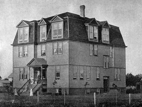 When the Town of Portage la Prairie declared bankrupcy in 1886 and the public school was forced to close, the Reverend B. Franklin of West Prospect Church proposed establishing a private school—Lansdowne College, named for the Governor General of Canada at the time—to fill the educational void. Opened in September 1887, with a teaching staff of five (including Franklin as Principal), the college offered advanced instruction in art, classics, languages, mathematics, music, and commercial arts.