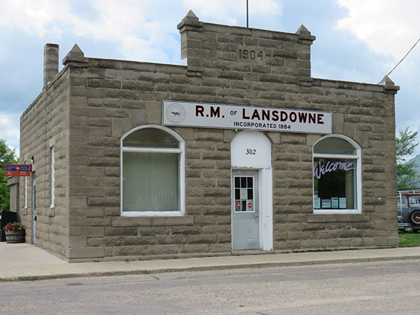 This impressive building in Arden, in the Municipality of Glenella-Lansdowne, was built in 1904 of locally-cast concrete blocks, by the Arden Cement Block and Building Company established that year by municipal official Maurice Boughton and others. It has the distinction of being one of the few municipal offices in Manitoba that is still used for its original purpose.