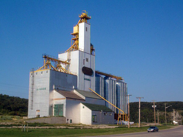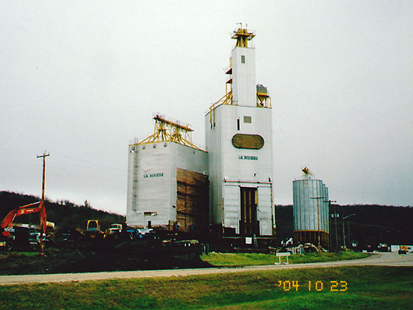 A wooden grain elevator at La Riviere, on the CPR La Riviere Subdivision in what is now the Municipality of Pembina, was built by Manitoba Pool Elevators between February and October 1994, joining an annex from 1990 that had been part of a prior elevator built in 1980. Closed around 2001, the elevator, annex, and three steel tanks were moved to Somerset in November 2004.