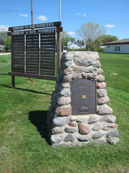 A monument in the Laurier Centennial Park, at Laurier in the Municipality of Ste. Rose, commemorates pioneers of the local area. A second monument nearby was erected in 1990 during a community homecoming.