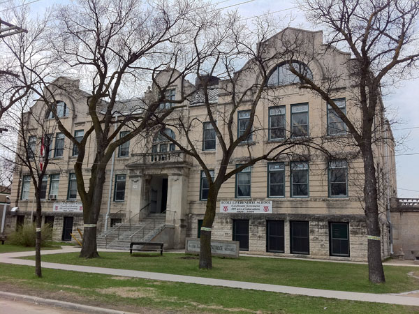 Based on a design by School Division Architect and Commissioner of School Buildings J. B. Mitchell and constructed of local brick and limestone, La Verendrye School is a commingling of Queen Anne, Romanesque Revival and Classical Revival architectural styles. Among La Verendrye School’s near-century of alumni, you will find Terry Fox’s father, Rolly and artist Nathan Carlson. The centenary of La Verendrye School, now a French immersion elementary school, occurred in 2009.