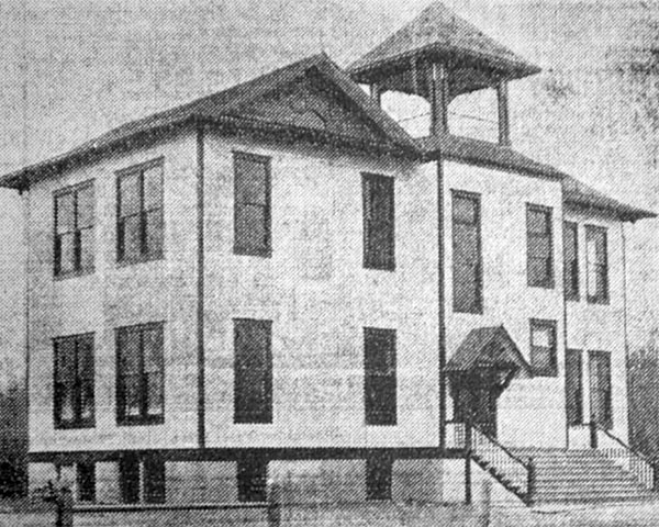 Built during the summer of 1907 by contractor Herbert Chapman, using architectural plans drawn by Pall Melsted “Paul” Clemens, St. James School was a two-storey wood frame building on a concrete foundation. It had four classrooms along with a basement which served as an indoor play area during cold or wet weather. Completed at a cost of around $10,000, its exterior had white walls and a dark-coloured roof.