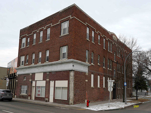 This three-storey brick block on Lipton Street in Winnipeg was designed by local architect William Fingland. Construction by the Ford Lewis Company began in 1914 but was interrupted by the First World War. The work was completed in 1921 by Thorsteinn Oddson. The 110 feet by 55 feet building contained 21 apartments in its original configuration. It has 24 apartments today.