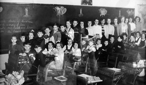 Back row: Linda Karpyshin, Yvette Ripert, Donna Driekluft, ? Driekluft, Arnold Learch, Herbert Doering, Donald Mokry, unknown, Sydney Georgison, Olga Chorney, Lenore White, Jenny Blackner, Olga Habec, unknown, Betty Hanson, Rosie Habec, Frances Donald, unknown, Mrs. Faseruk Teacher. Seated back row, unknown, Marlene Karpyshin, Kay Francis, Rosamund Ripert, Anne Blackner, Duncan Christie, Gary Karpyshin, Carol Zornick. Front row: unknown, Beverley Stranden, Anne Mokry, Dorothy Donald, Judy Karpyshin, Tony Georgison, unknown, Kay Francis.