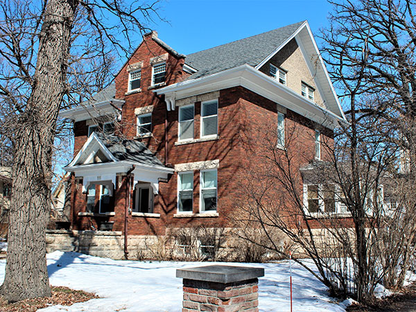 This two-storey residence in the Armstrong’s Point area of Winnipeg was designed by local architect Frank R. Evans and constructed in 1913 for accountant Alfred James Long and his wife Margaret McKay Long.