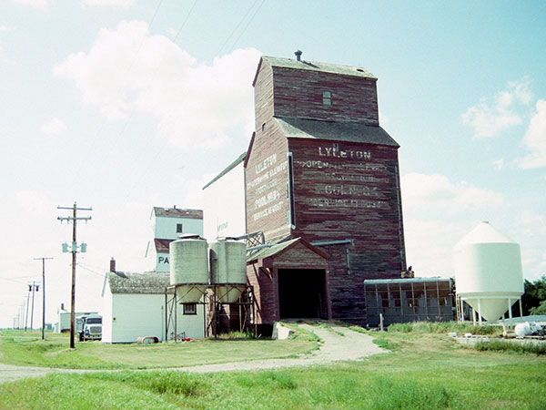 The former Manitoba Pool elevator at Lyleton, on the CPR Lyleton Subdivision in the Municipality of Two Borders, was built in 1928. In 1967, a temporary annex dating from 1952 was replaced by a new crib annex that increased the facility's total capacity to 128,000 bushels. In April 1976, swollen waters of the Souris River washed out a railway bridge between Lyleton and Waskada. The Canadian Pacific Railway, which wanted to abandon the line to Lyleton, decided not to replace the bridge. Consequently, the elevator closed in December 1976 and the line was formally abandoned in December 1977. The elevator was sold into private hands.