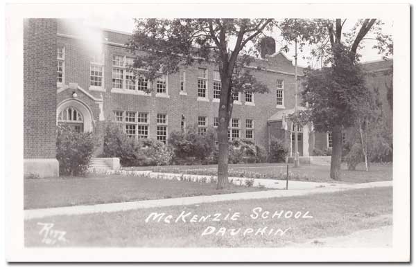 Its two-storey, twelve-classroom brick replacement was designed by local architect Joseph Henry Bossons and built later in 1909. It was named Mackenzie School, allegedly to commemorate railway builder William Mackenzie (1849-1923) who constructed the first railway to the Dauphin region. This school was destroyed by fire on 12 December 1926.
