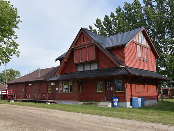 Former Canadian Pacific Railway station from St. Claude at the Manitoba Dairy Museum (June 2019)