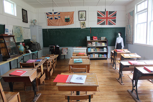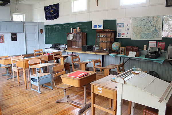 Interior of the former Bell School at the Manitoba Dairy Museum (August 2022)
