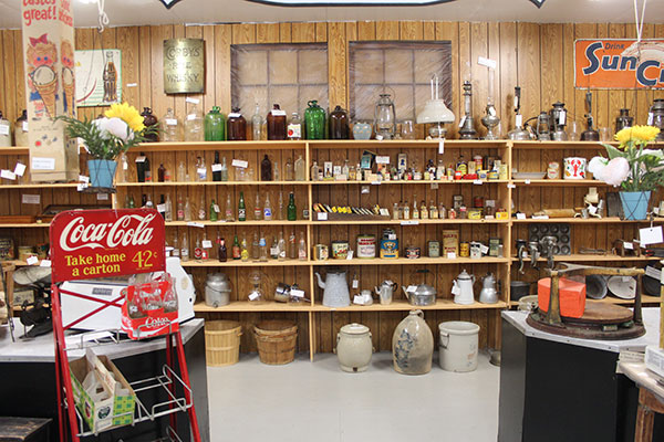 Interior of the former Canadian Pacific Railway station from St. Claude at the Manitoba Dairy Museum (August 2022)