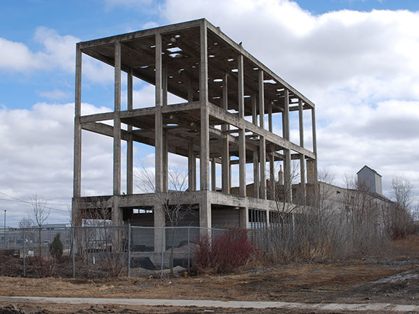 The site was sold to McCabe Grain and, in 1935, the former whisky warehouse and grain elevator were converted into a mill and feed plant under the name of Shamrock Elevator, with some $15,000 to $20,000 in additions and alterations undertaken by contractor R. O. Benell of Moose Jaw, Saskatchewan. The concrete skeleton of the distillery was used as a grain-cleaning warehouse. It replaced the Shamrock Elevator at the corner of Tache Avenue at Hebert Street which had burned in April 1935.