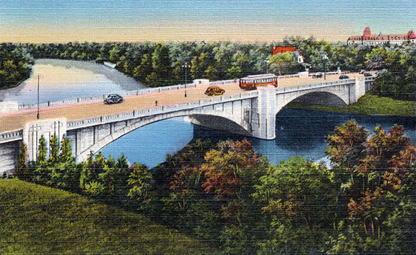 Postcard view of the Maryland Bridge with St. Mary’s Academy in the background (circa 1946)