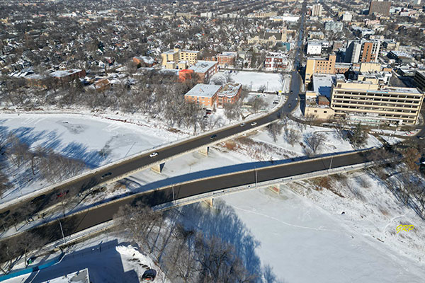 The Maryland Twin Bridge is a major link in the transportation system for Metropolitan Winnipeg and was constructed by the Metropolitan Corporation of Greater Winnipeg and financed jointly with the Province of Manitoba.