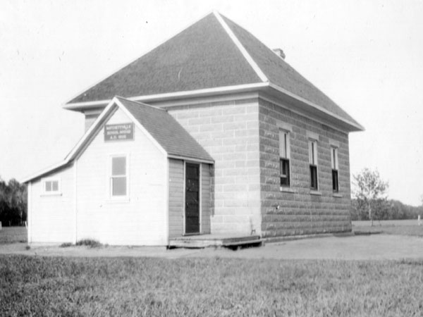 Matchettville School was formally established in May 1905 and a school building was erected in 1906 on the southwest quarter of 1-9-10 west of the Principal Meridian in what is now the Municipality of Norfolk-Treherne. The structure was constructed of concrete blocks made near Austin, by the Thomson family, using a machine brought from Ontario.